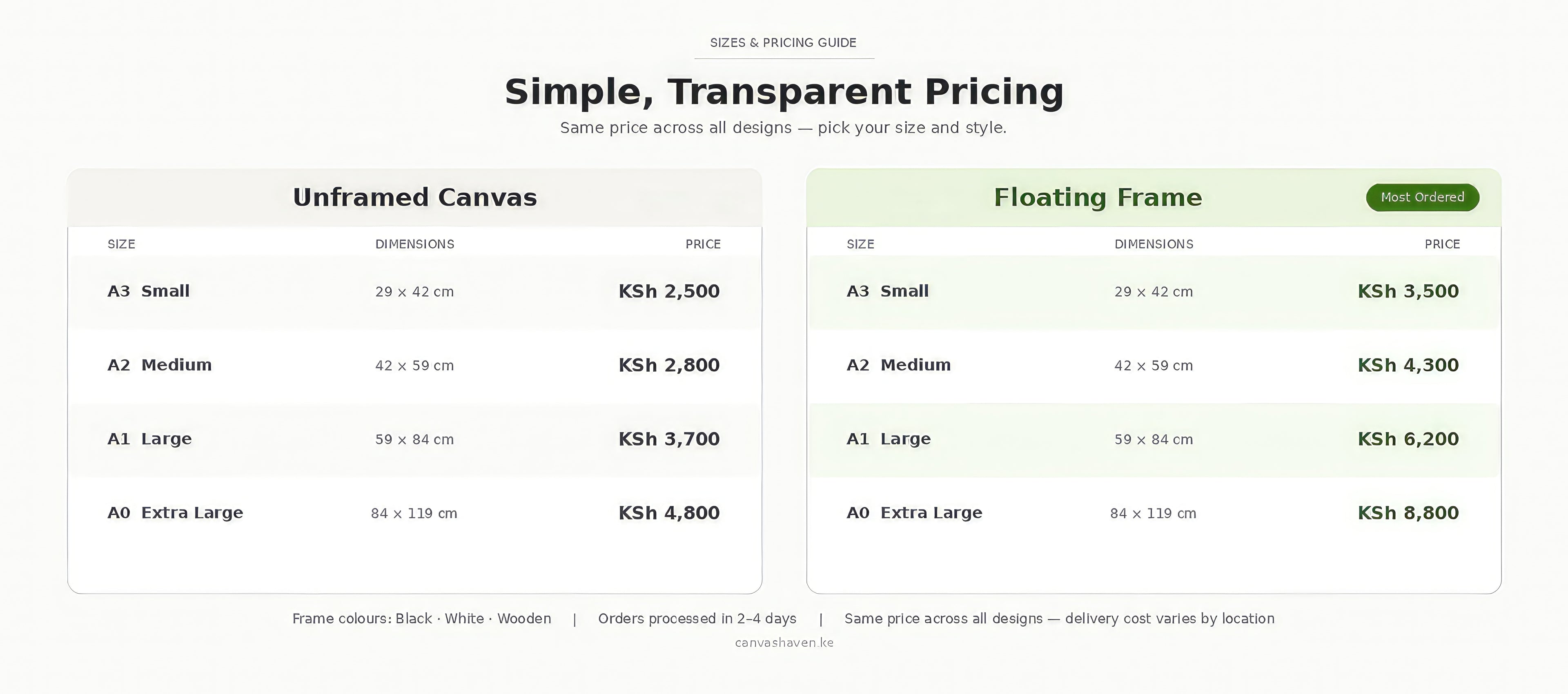 We started Canvas Haven because Kenya's walls deserved better. Born from a passion for design and a gap nobody was filling, we create and deliver premium framed canvas art to homes, offices, Airbnbs and hotels across Kenya. Beautiful spaces shouldn't be hard to achieve — and with Canvas Haven, they don't have to be.